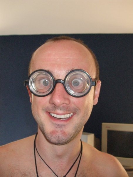 self-abuse should have been routine but went disastrously wrong. Mr Fury was reportedly too upset to comment in detail but Boadicea Stiletto did make a public statement on behalf of Mr Fury and the rest of the band. Speaking outside of the Kamala Paradise Hotel in Chad, Stiletto said: "I should like to confirm the unconfirmed reports that Shag Fury, keyboard player with international rock act RockItt, has undergone a minor laser eye surgery procedure. The procedure was mostly successful, but Shag has been left with some residual myopia which means that he will have to wear spectacles for the time being". Wayne Kranium, however, seemed to suggest that the problem was more serious. "The poor bastard's practically f#@king blind", said the bassist, "he's got to wear glasses that look like he's peering the wrong way through a telescope". Singer Margot Chutney - known to be the filling in the RockItt sandwich and the glue that holds the band together - immediately flew to Chad to console Shag (pictured right wearing his new glasses). She also hinted that the problem with Fury's sight was severe. Interviewed as she left the hotel where Fury is staying, Chutney said "It seems that Dr Dosh set the laser to the wrong setting after a session smoking a nargile. He's zapped Shag's eyes, but we're hopeful that another session of laser eye correction will fix the problem. Shag was pretty upset but I think I managed to cheer him up a bit." Guitarist Buzz Muffberger, who is currently on holiday in Baghdad, spoke to www.rockitt.co.uk by satellite phone: "Obviously it's very sad when things go wrong. Shag is an internationally renowned sex symbol, loved by millions the World over. His looks are his livelihood and anything that impacts on that is potentially very serious. That said, I think his new glasses are very fashionable and really suit him - in fact he looks very studious and it brings out his intelligence..." When asked what impact this might have on the band, drummer Minty Clinch shrugged his shoulders but made no comment.